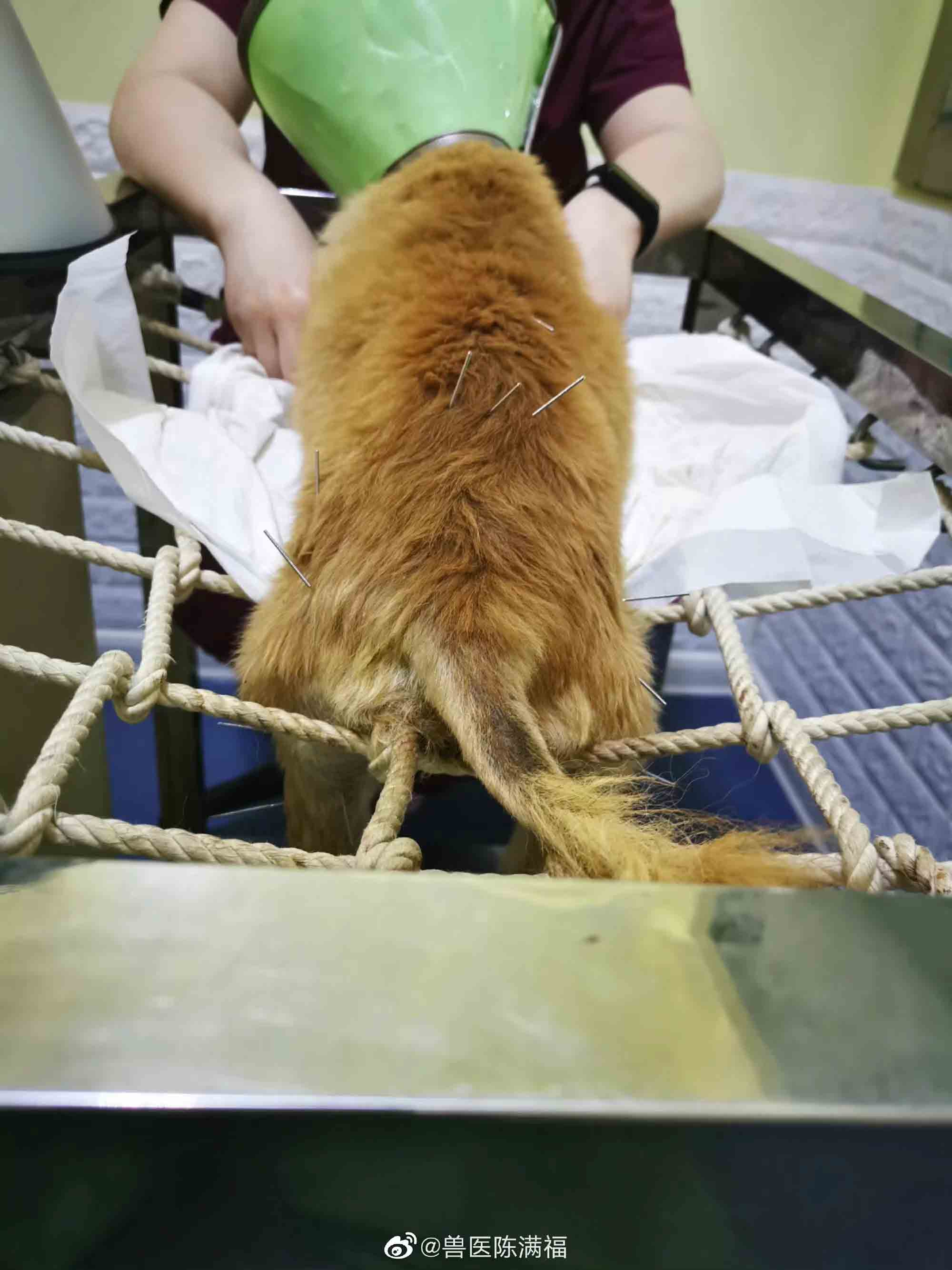 经中兽医治疗(针灸、中药、推拿)10天后,效果较好,患犬痛症减轻,治疗45天后患犬康复出院。