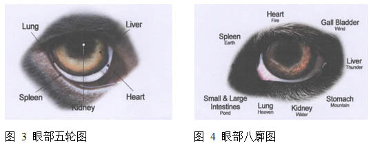 眼睛功能与五脏关系密切,其异常症状与特异病变可以利用五轮 (图3)、八廓 (图4)、和六经理论诊断之。